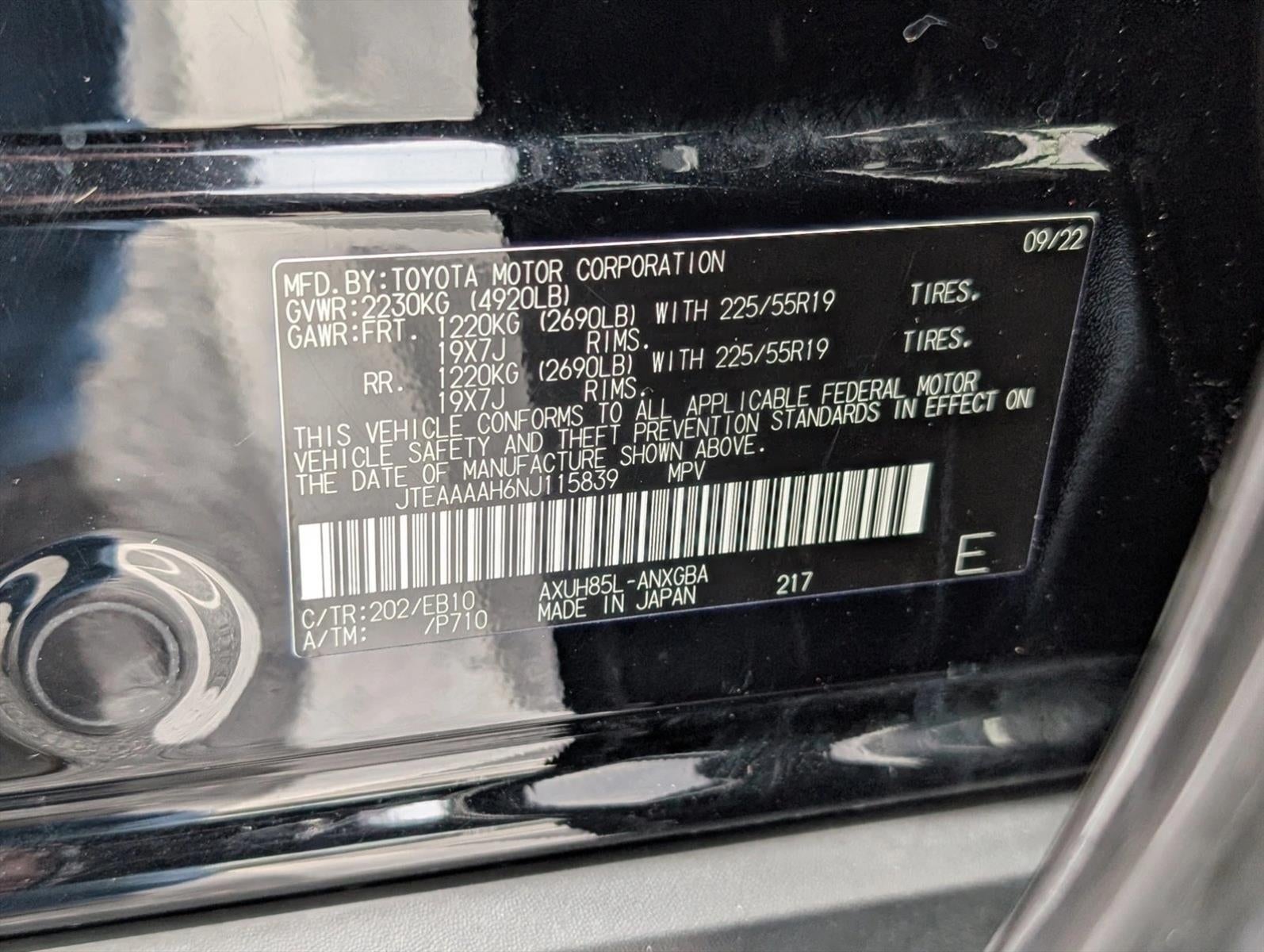 - Tires: P225/55R19 AS
