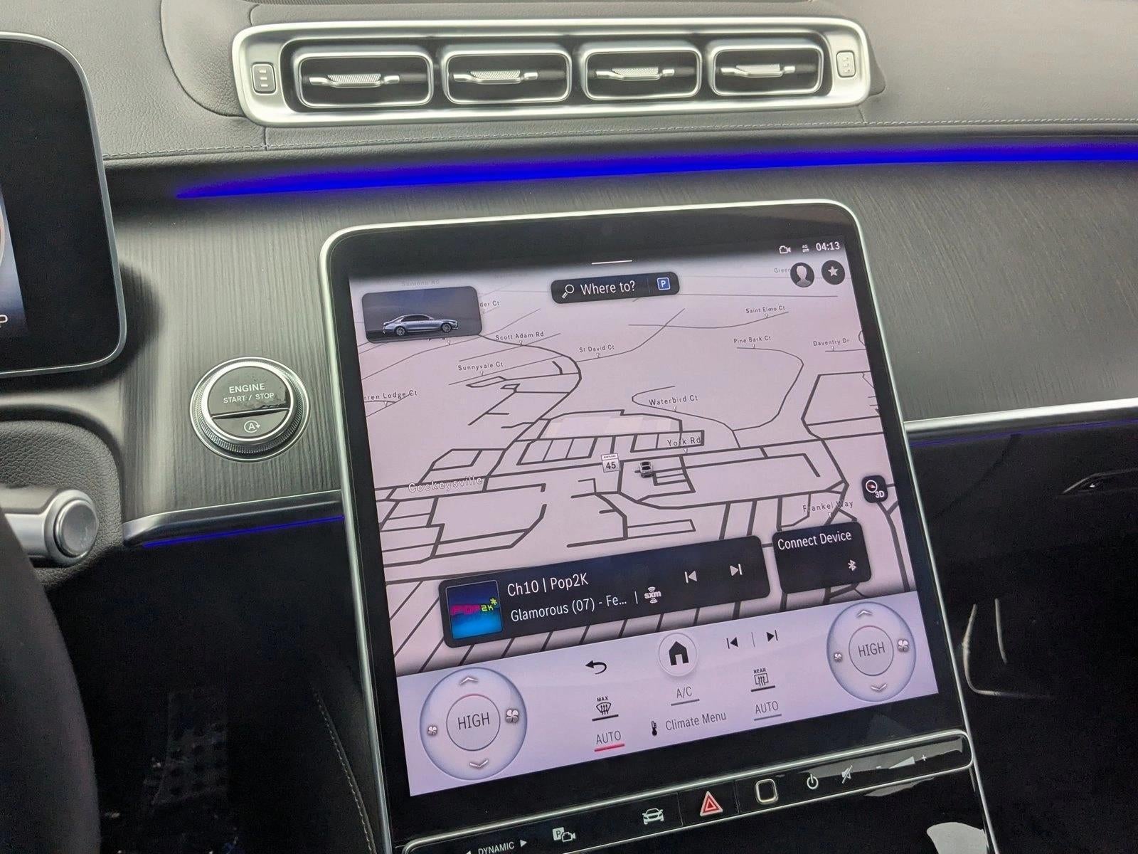 - Radio: MBUX w/Navigation -inc: 12.8" OLED touch screen, Hey Mercedes voice control, augmented video for navigation, wireless front charging, wireless smartphone integration (Apple CarPlay, Android Auto) and online music streaming